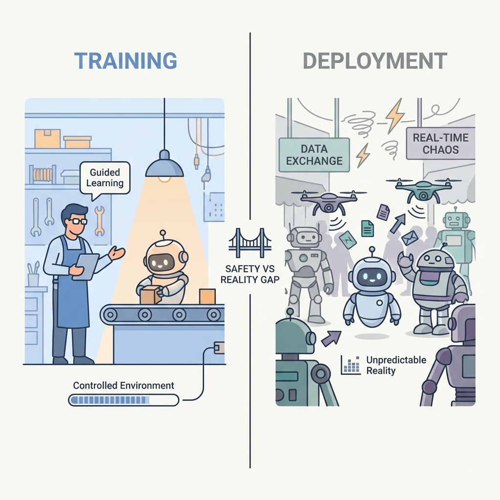 The Training-Deployment Gap: Agents trained in controlled environments to serve and work with humans faces the chaotic reality when left to its own devices.