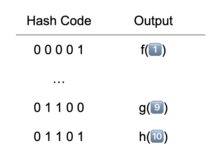 Now, when we stack multiple neurons together to form a 1-layer neural network, something more complex happens. Each neuron creates increasingly complex hashing functions (regions) of the input space. Figure 2 presents an example of such a scenario where each partition leads to a hash code with a mapping function: